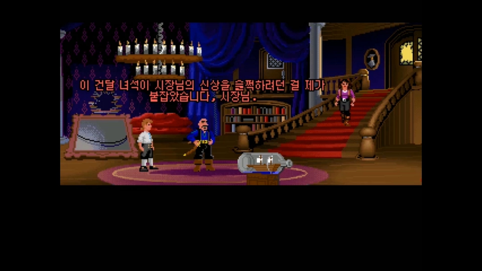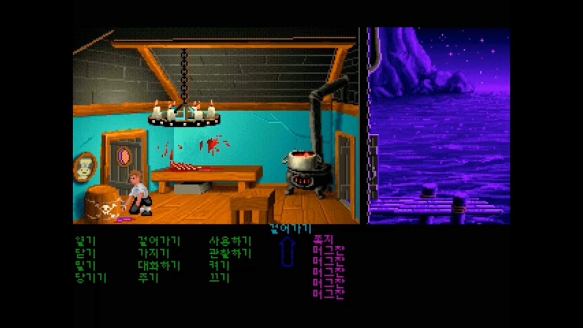 스컴 바로 들어와 보면 해적들은 모두 온데간데 없고 탁자 위엔 그로그 잔들만 덩그러니 놓여 있을 뿐입니다.