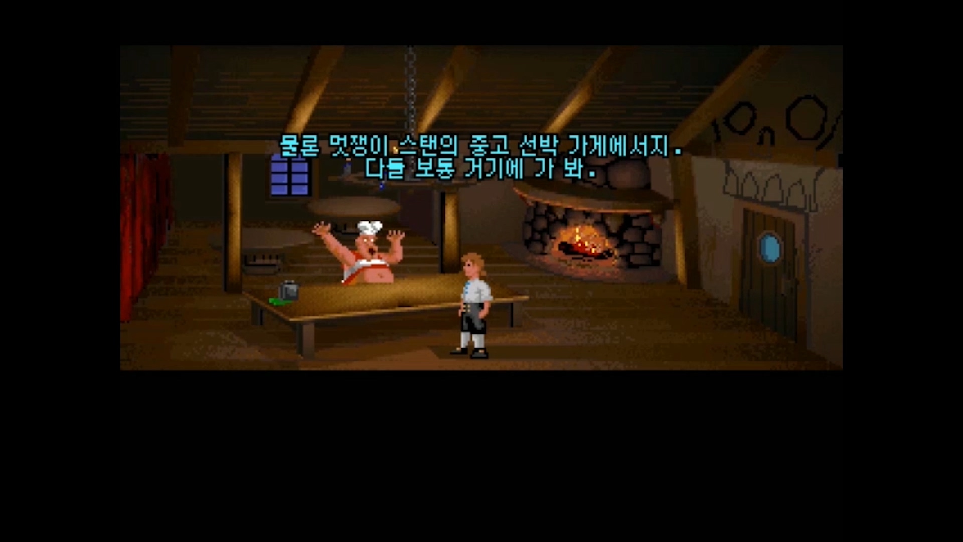 배를 구하려면 '멋쟁이 스탠의 중고 선박 가게'로 가 보라고 알려준 주방장은 다시 엎어져 펑펑 웁니다.