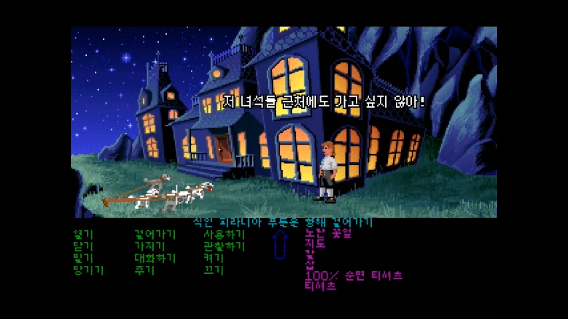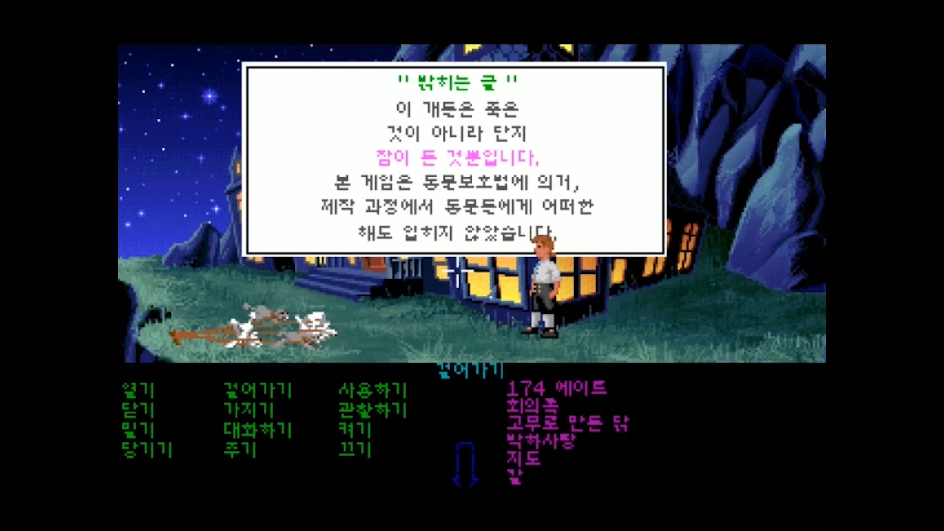 이 멍멍이들을 재우기 위해서는 스컴 바에서 챙겨온 '고기 덩어리'와 샛길에서 주워온 '노란 꽃잎'이 필요합니다.