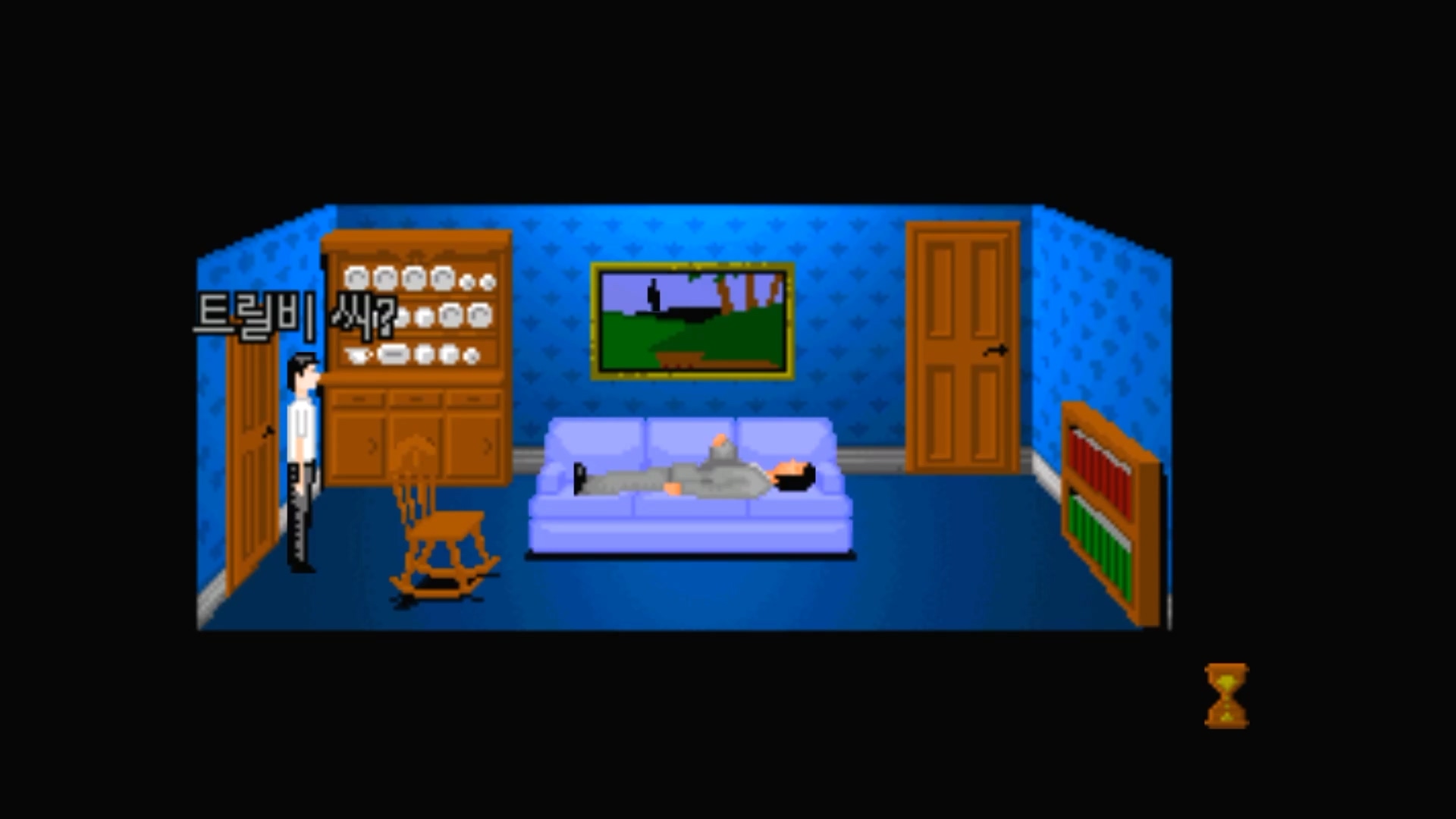 거실에 홀로 있던 주인공 '트릴비'는 무언가 이상한 소리를 듣고 주변을 두리번 거립니다.