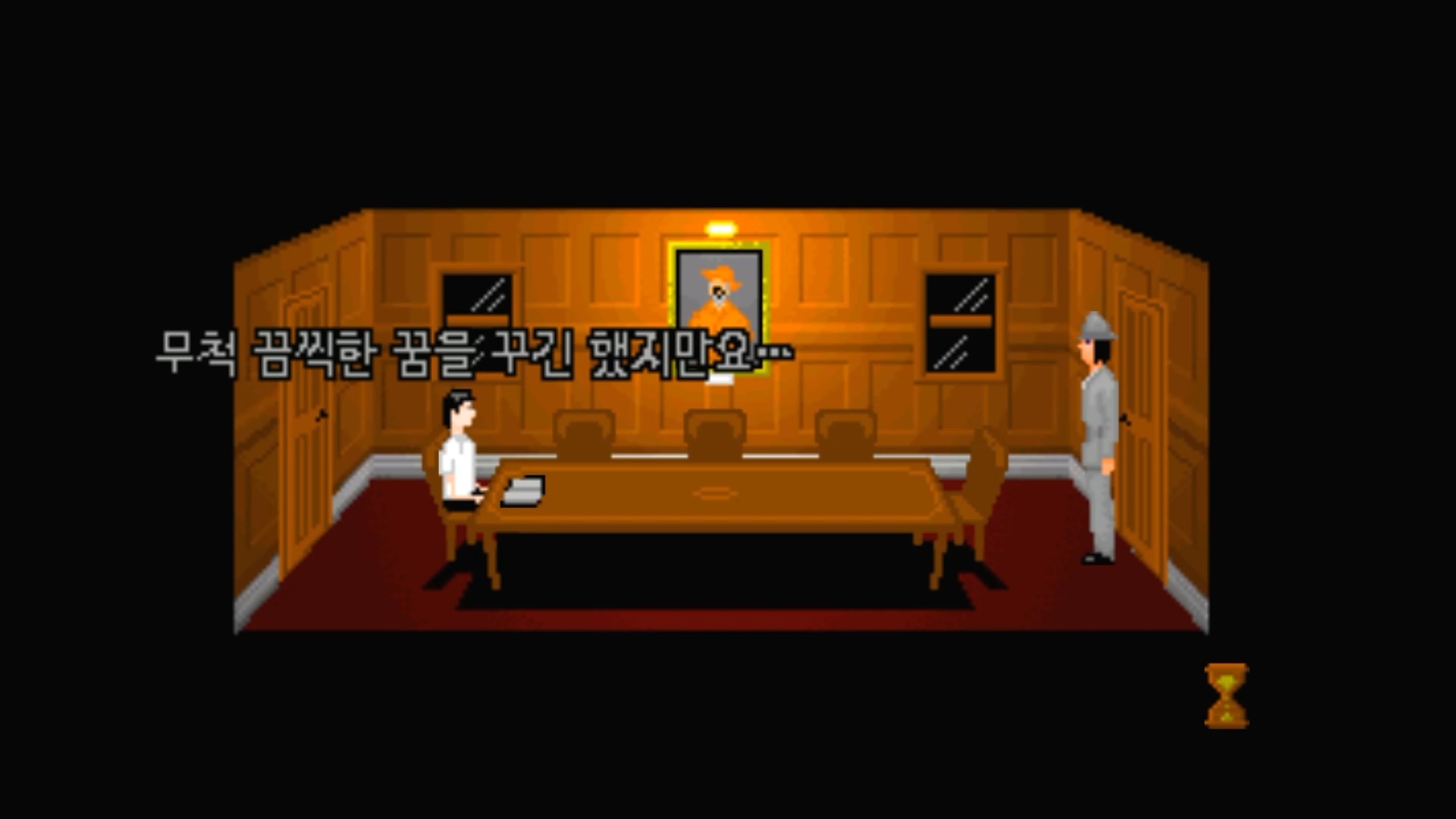 그때 왼쪽 문이 열리며 누군가가 나타납니다.