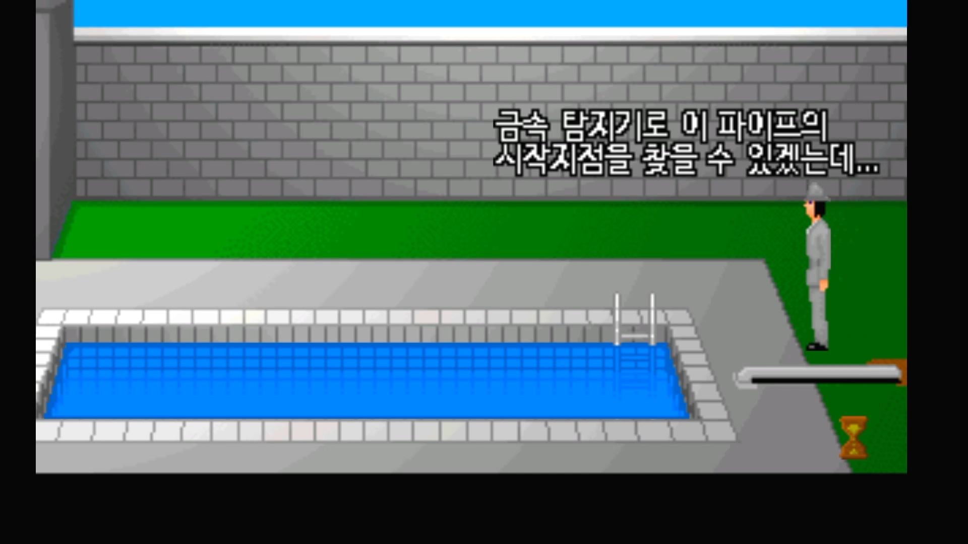 이 패널을 누르면 수영장의 물이 빠지고 사다리를 통해 수영장 아래로 내려갈 수 있게 됩니다.