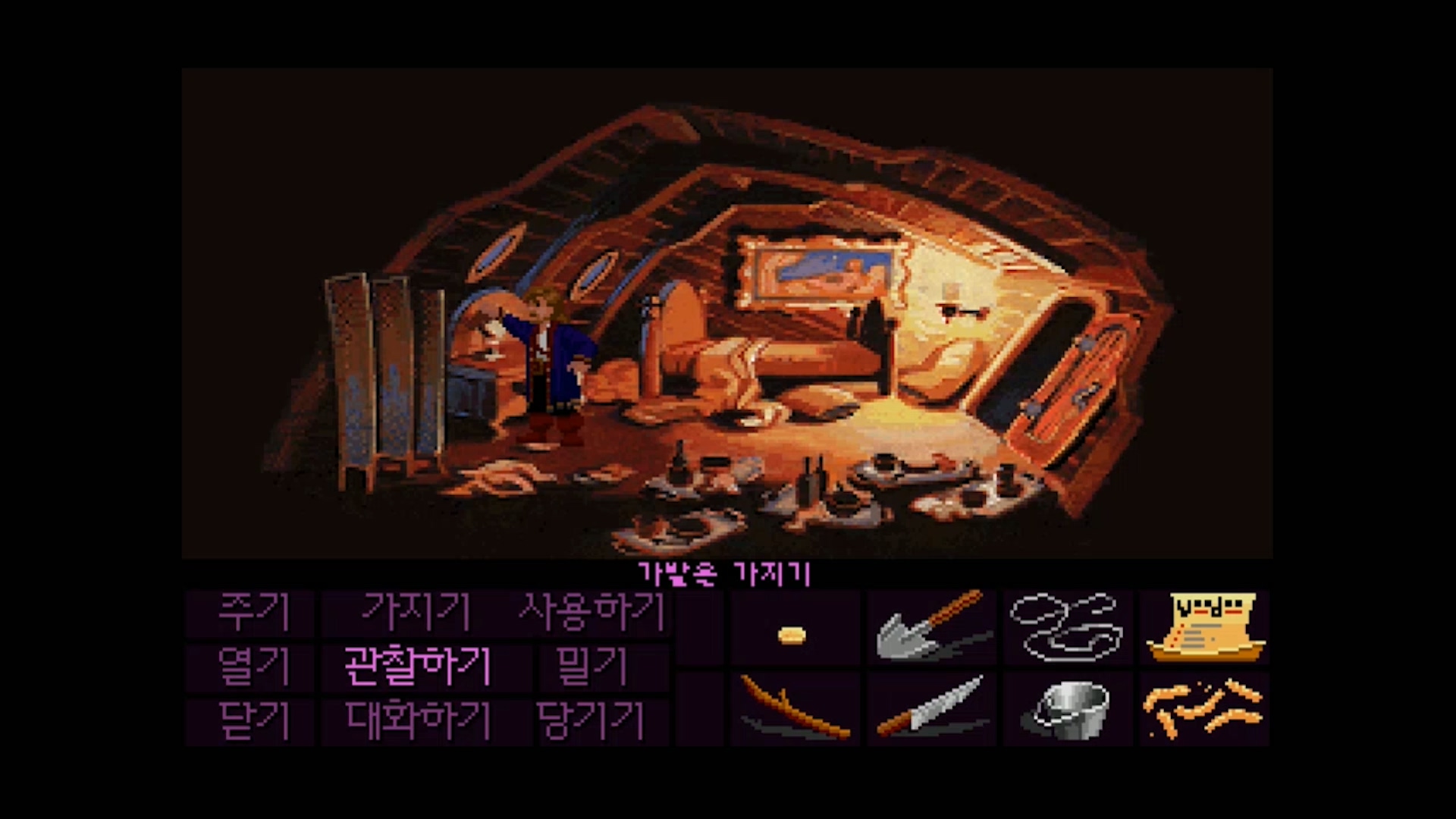 해적들 아래 있는 '양동이'를 주으면 손 대지 말라고 하는데, 아저씨 꺼냐고 물으면 그냥 가지라고 합니다.